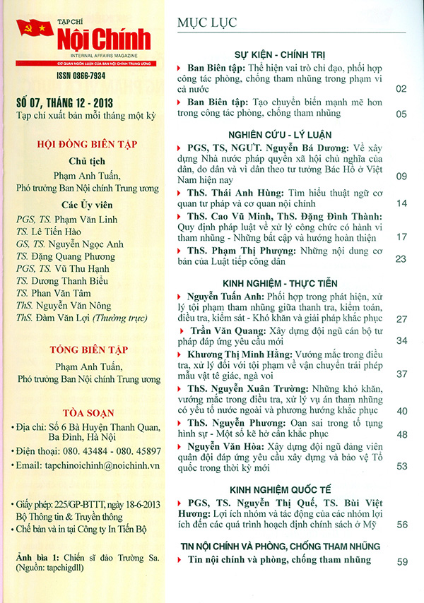 Tạp chí Nội chính số 7 tháng 12 năm 2013