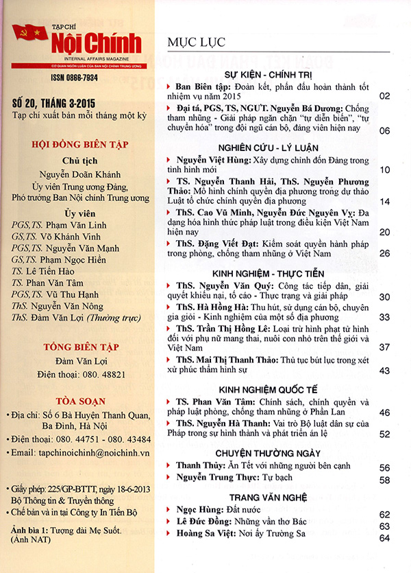 Tạp chí Nội chính số 20 tháng 3 năm 2015