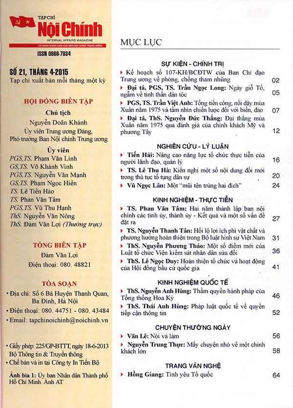 Tạp chí Nội chính số 21 tháng 4 năm 2015