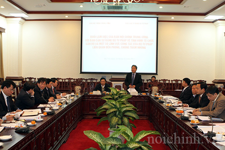 Lãnh đạo Ban Nội chính Trung ương làm việc với Ban cán sự Đảng Bộ Tư pháp về tình hình tổ chức cán bộ và một số lĩnh vực công tác liên quan đến phòng, chống tham nhũng