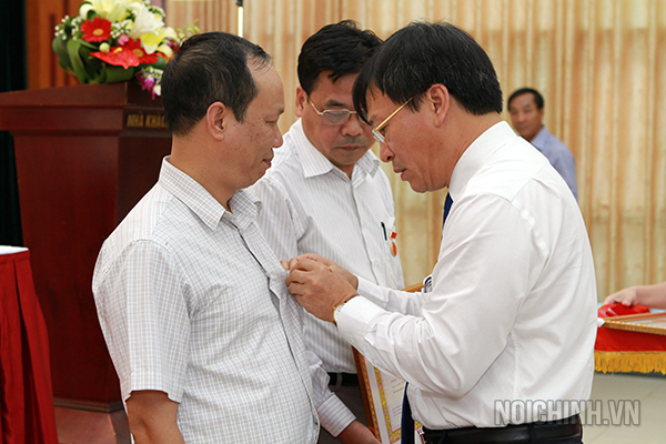 Đồng chí Phạm Anh Tuấn, Ủy viên Ban Chấp hành Đảng bộ Khối các cơ quan Trung ương, Bí thư Đảng ủy, trao tặng Huy hiệu 30 năm tuổi Đảng cho 02 đồng chí đảng viên thuộc Đảng bộ.