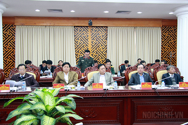 | Đồng chí Võ Văn Dũng, Ủy viên Trung ương Đảng, Phó Trưởng ban Thường trực Ban Nội chính Trung ương, Phó trưởng Đoàn công tác phát biểu tại Hội nghị |