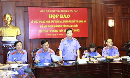 Sáng ngày 5-11-2013, Viện kiểm sát nhân dân tối cao (VKSNDTC) đã họp báo về việc kháng nghị tái thẩm và tạm đình chỉ thi hành án đối với ông Nguyễn Thanh Chấn (Bắc Giang) người bị kết án chung thân về tội giết người.
