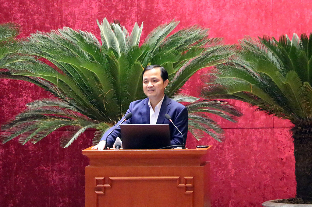 | Đồng chí Đặng Khánh Toàn, Bí thư Tỉnh ủy, Trưởng Ban Chỉ đạo phòng, chống tham nhũng, lãng phí, tiêu cực tỉnh Nam Định phát biểu |