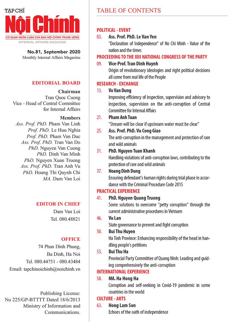 Giới thiệu Tạp chí Nội chính số 81 tháng 9 năm 2020