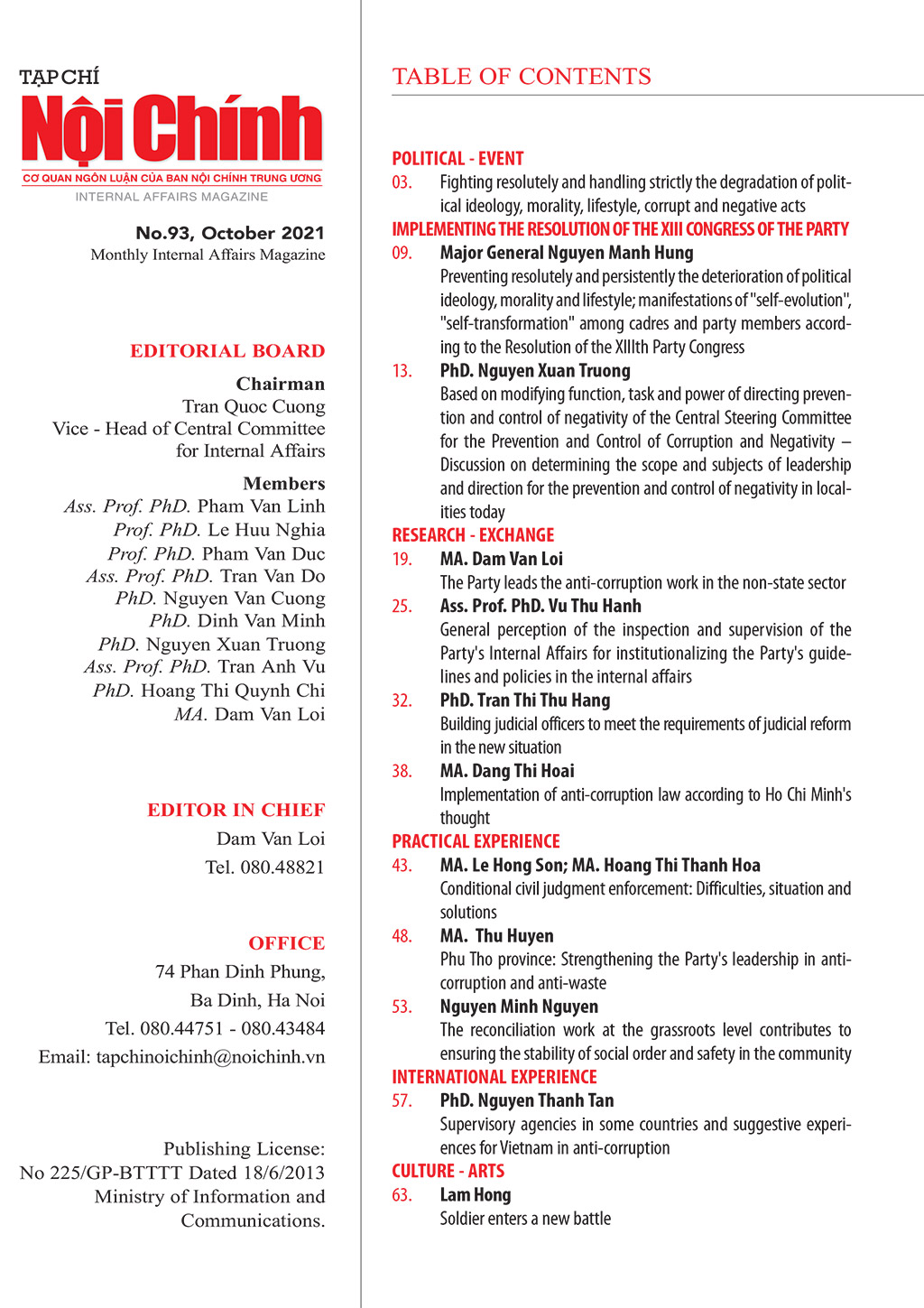 Tạp chí Nội chính số 93 tháng 10 năm 2021