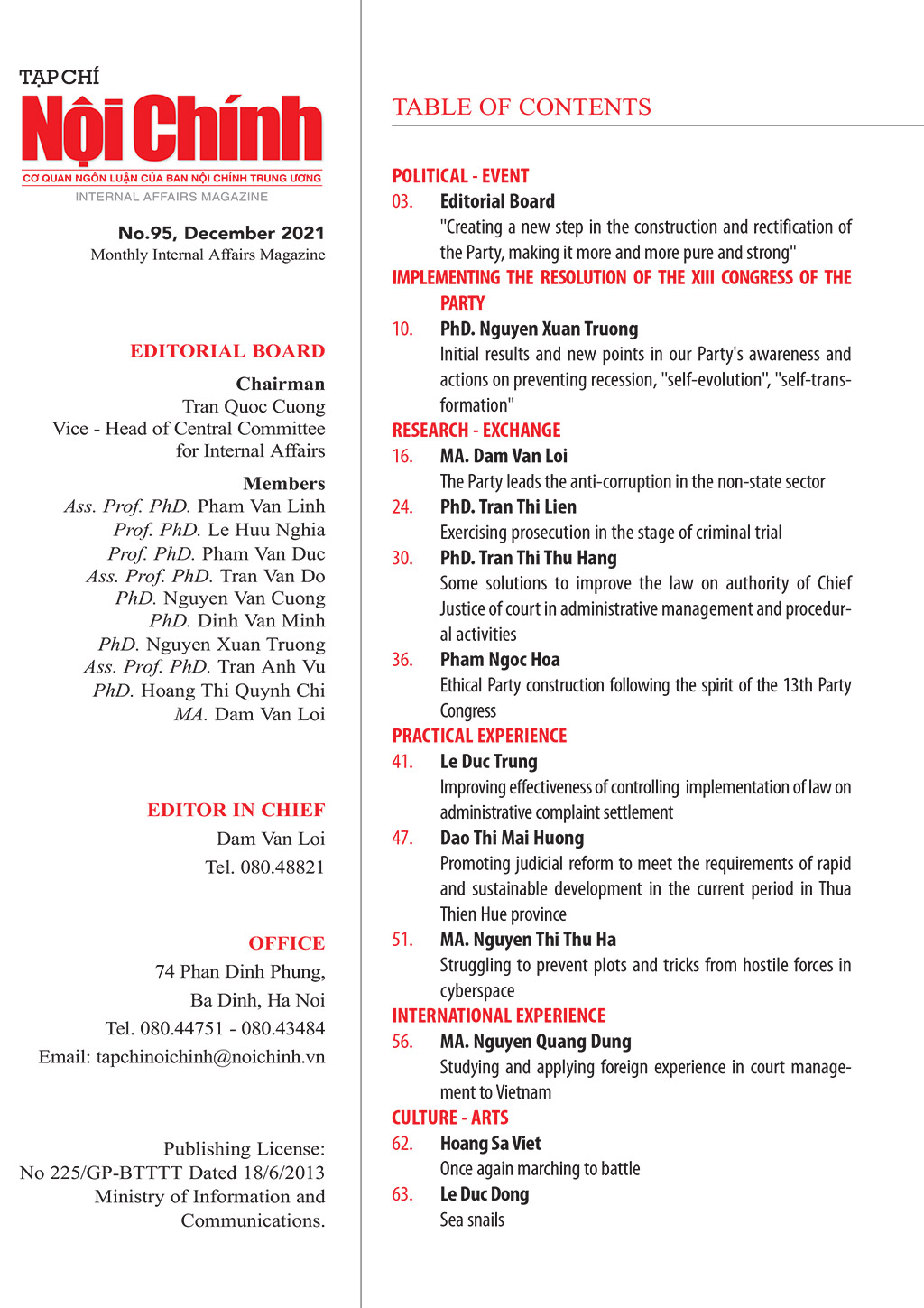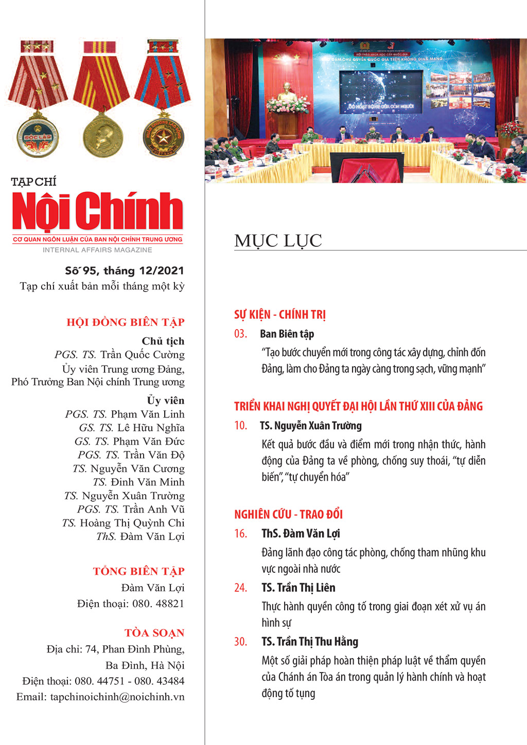 Giới thiệu Tạp chí Nội chính số 95 tháng 12 năm 2021
