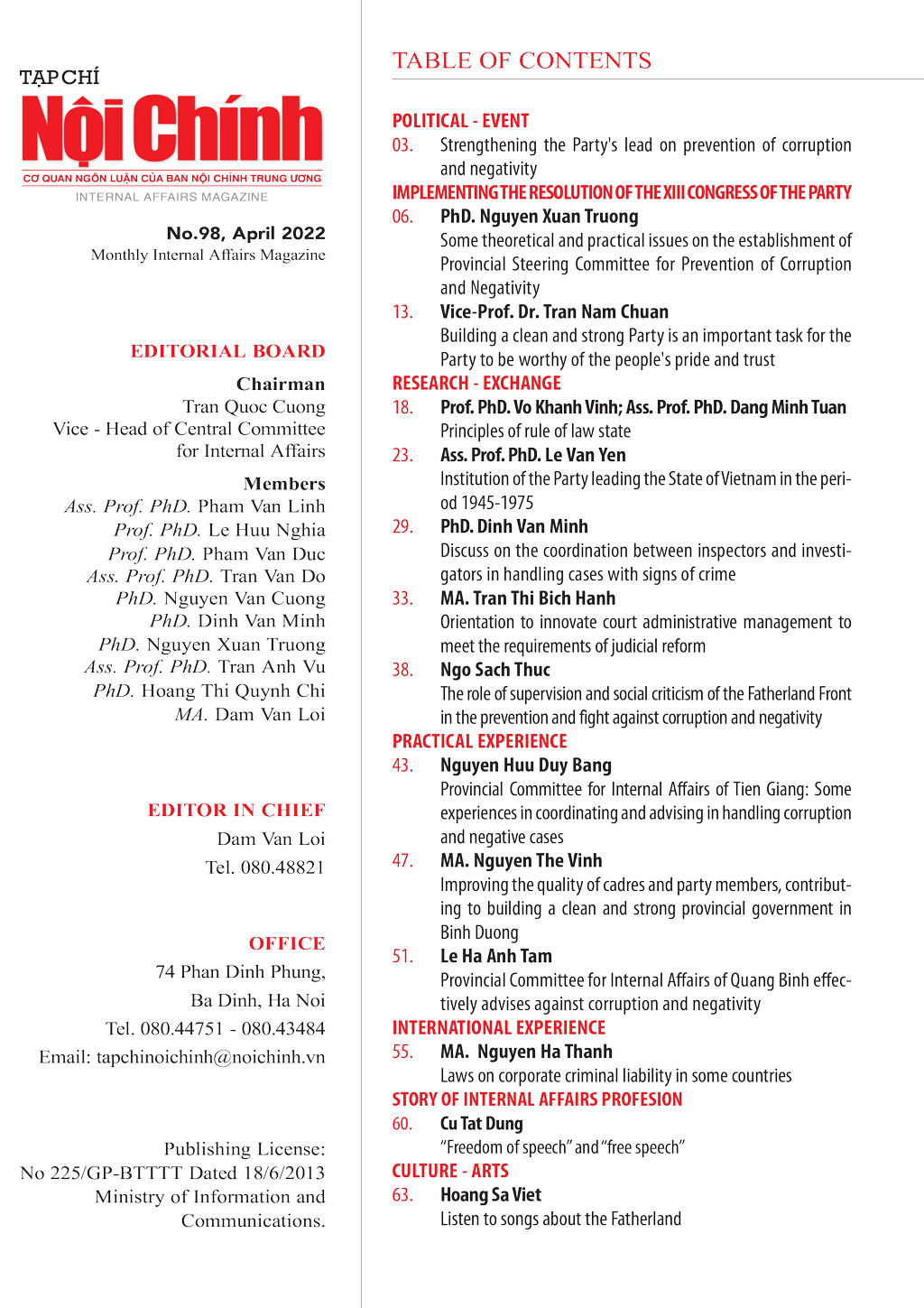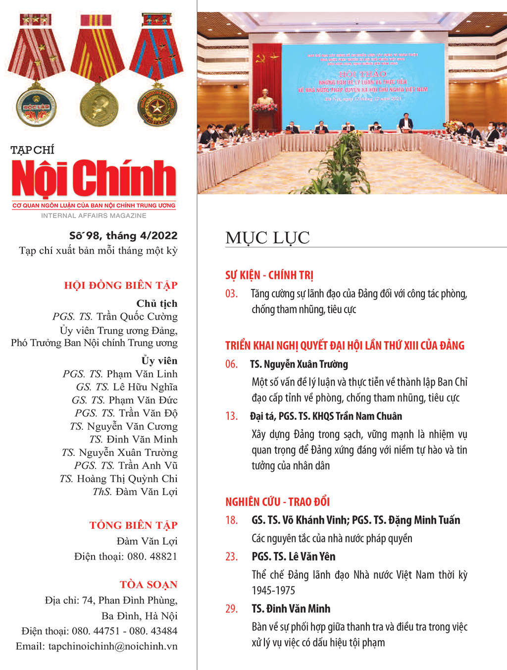 Giới thiệu Tạp chí Nội chính số 98 tháng 4 năm 2022