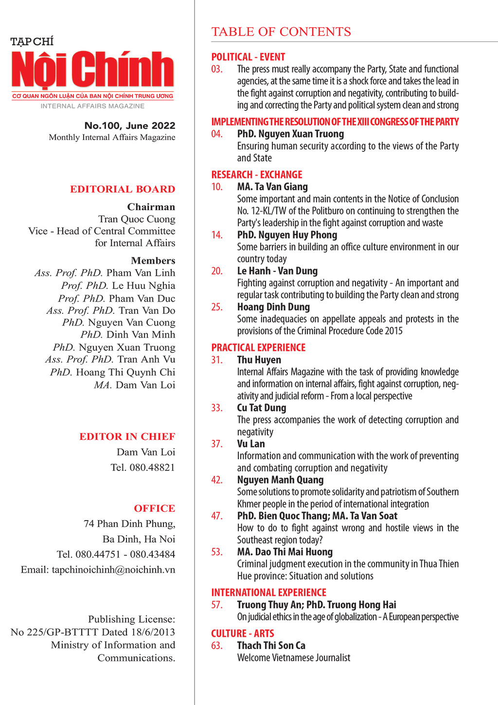 Giới thiệu Tạp chí Nội chính số 100 tháng 6 năm 2022