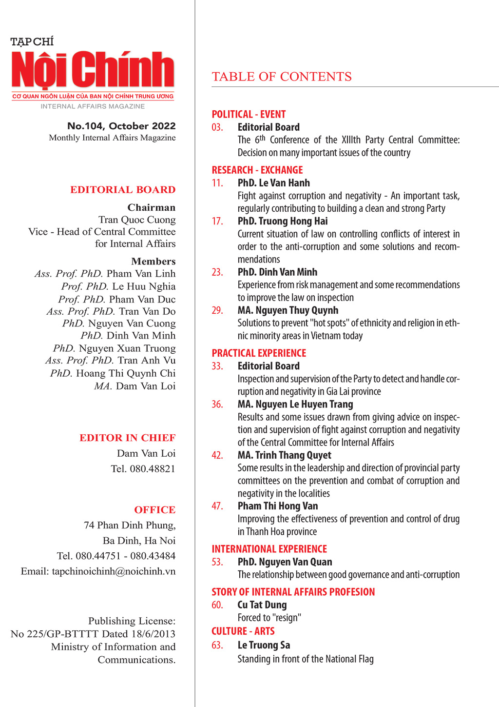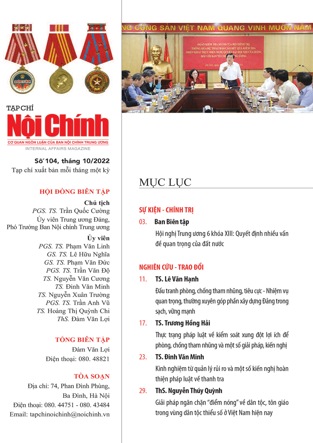 Giới thiệu Tạp chí Nội chính số 104 tháng 10 năm 2022