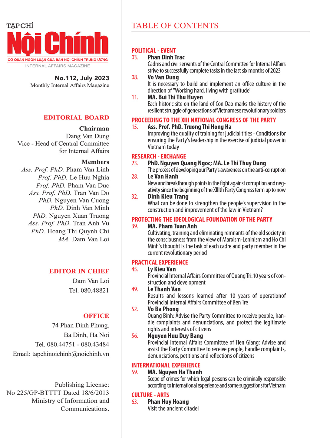 Giới thiệu Tạp chí Nội chính số 112 tháng 7 năm 2023