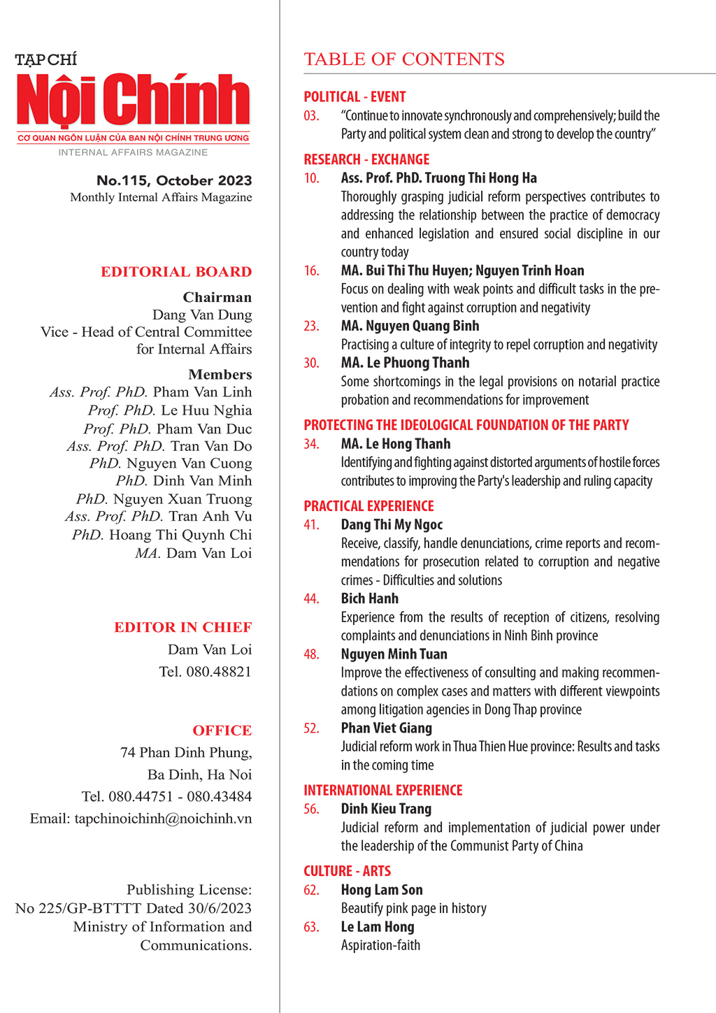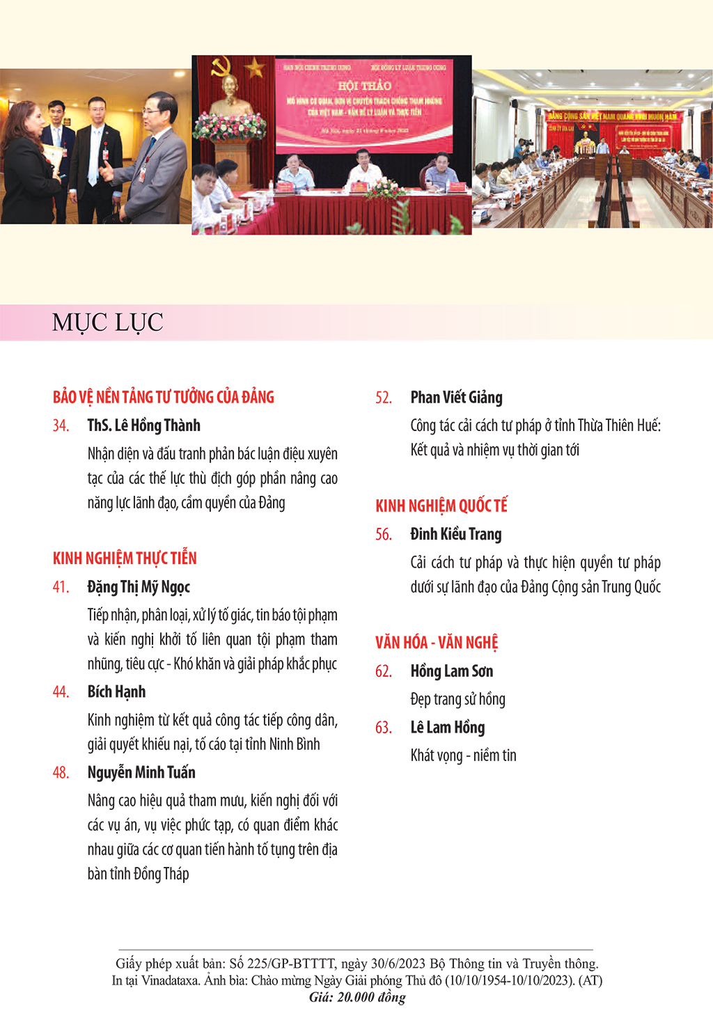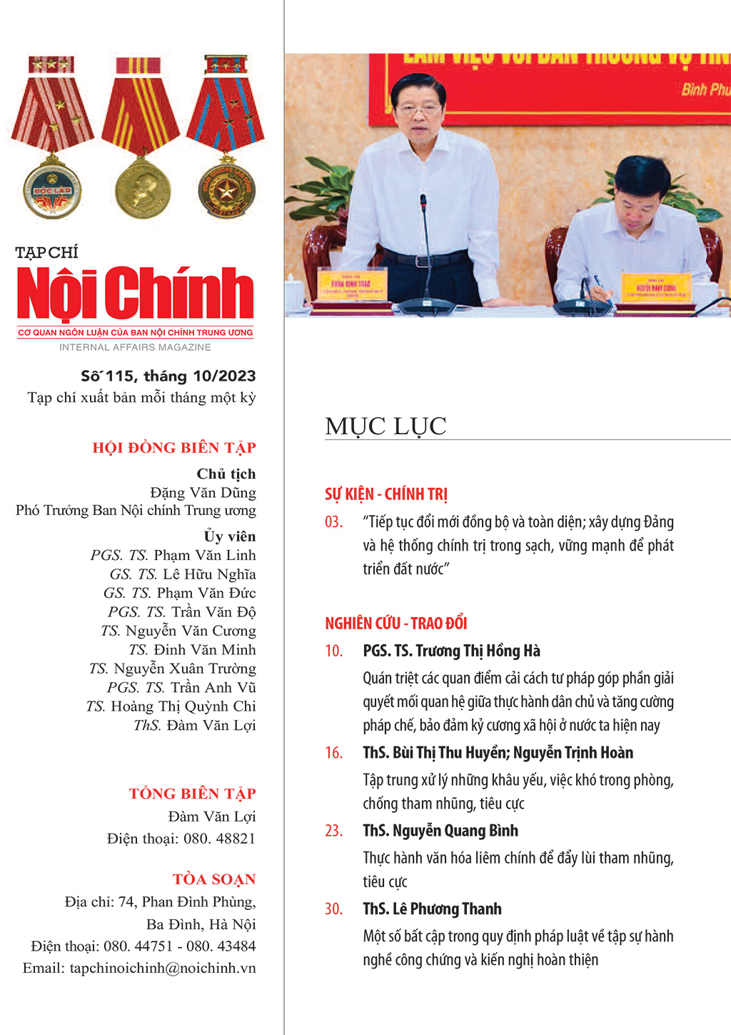 Giới thiệu Tạp chí Nội chính số 115 tháng 10/2023