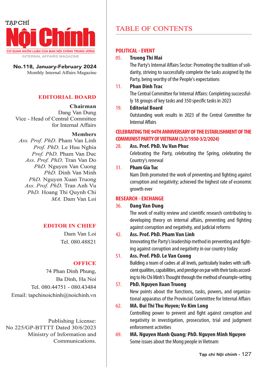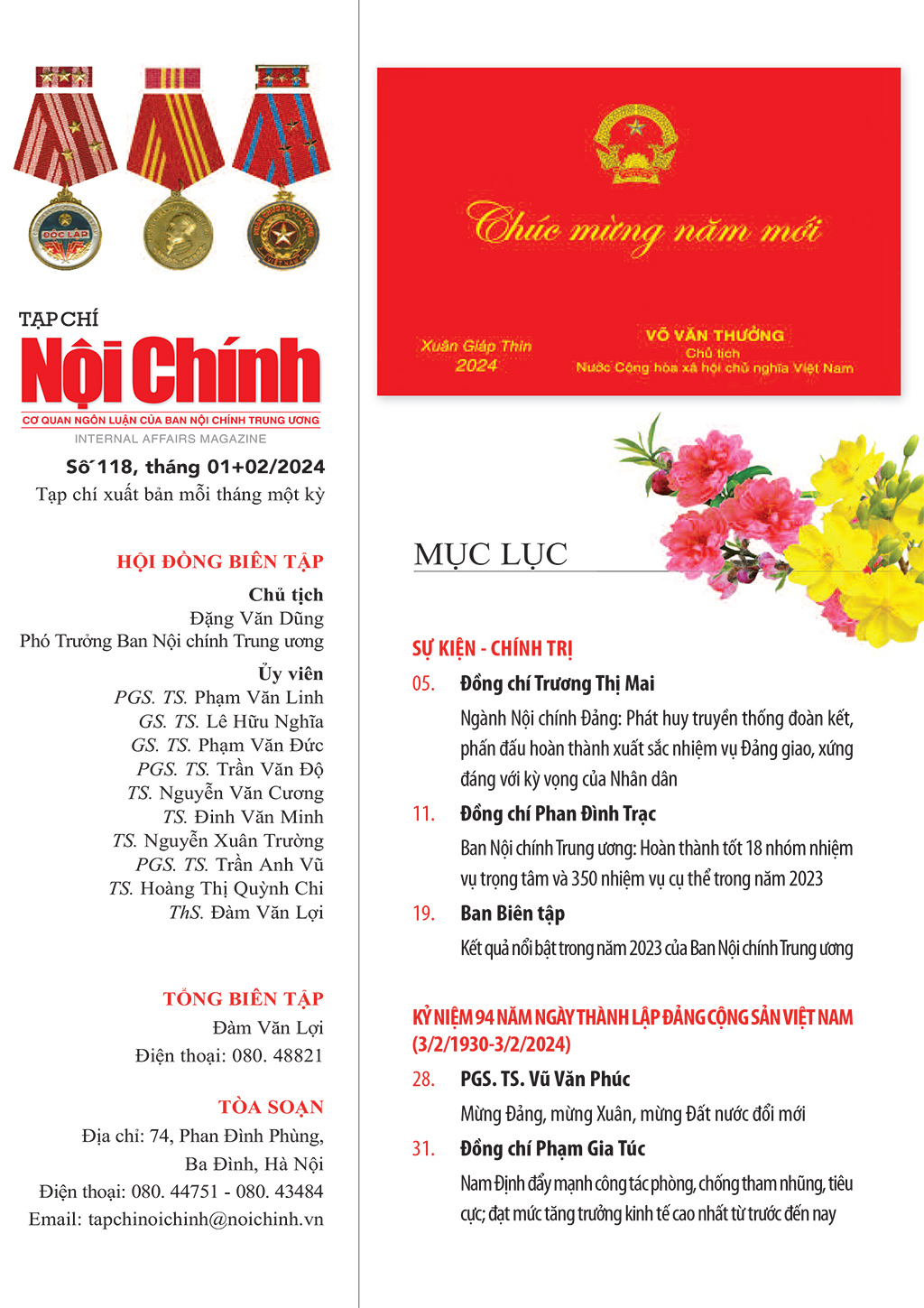 Giới thiệu Tạp chí Nội chính số Xuân Giáp Thìn 2024 - 118 tháng 1+2/2024
