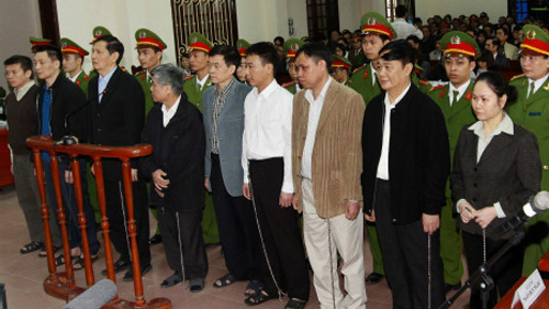 Từ ngày 27 - 30/3/2012, Tòa án nhân dân thành phố Hải Phòng đã đưa ra xét xử theo trình tự sơ thẩm vụ án cố ý làm trái quy định của Nhà nước về quản lý kinh tế gây hậu quả nghiêm trọng; sử dụng trái phép tài sản, Hội đồng xét xử đã tuyên phạt các bị cáo từ 03 - 20 năm tù. Mức án các bị cáo trong vụ án: (1) Phạm Thanh Bình, nguyên Chủ tịch HĐQT Tập đoàn Vinashin 20 năm tù; (2) Trần Quang Vũ, nguyên Tổng giám đốc Tập đoàn Vinashin, nguyên Tổng giám đốc Công ty Nam Triệu 11 năm tù; (3) Trần Văn Liêm, nguyên Trưởng Ban kiểm soát Vinashin 19 năm tù; (4) Nguyễn Tuấn Dương, nguyên Chủ tịch HĐQT Công ty cổ phần đầu tư Cửu Long 03 năm tù; (5) Tô Nghiêm, nguyên Chủ tịch Công ty TNHH MTV Công nghiệp tàu thủy Cái Lân 18 năm tù; (6) Trịnh Thị Hậu, nguyên Tổng giám đốc Công ty tài chính Công nghiệp tàu thủy (VFC) 14 năm tù; (7) Hoàng Gia Hiệp, nguyên Phó tổng giám đốc Công ty tài chính Công nghiệp tàu thủy (VFC) 13 năm tù; (8) Nguyễn Văn Tuyên, nguyên Tổng giám đốc Công ty cổ phần Công nghiệp tàu thủy Hoàng Anh 16 năm tù; (9) Đỗ Đình Côn, nguyên Phó tổng giám đốc Công ty cổ phần Công nghiệp tàu thủy Hoàng Anh 10 năm tù.
