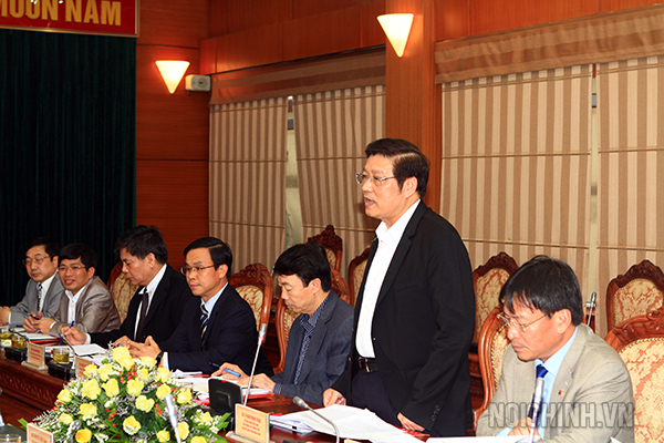 | Đồng chí Phan Đình Trạc, Ủy viên Trung ương Đảng, Phó trưởng Ban thường trực Ban Nội chính Trung ương phát biểu tại buổi làm việc |