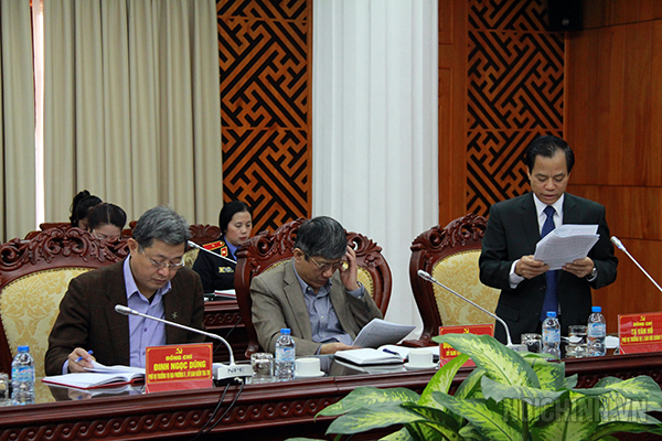 | Đồng chí Võ Văn Dũng, Ủy viên Trung ương Đảng, Phó Trưởng ban Thường trực Ban Nội chính Trung ương, Phó trưởng Đoàn công tác phát biểu tại Hội nghị |