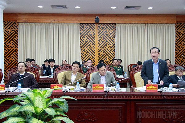 | Đồng chí Trần Sỹ Thanh, Ủy viên Trung ương Đảng, Bí thư Tỉnh ủy Lạng Sơn, Trưởng Đoàn đại biểu Quốc hội khóa XIV tỉnh Lạng Sơn phát biểu tại Hội nghị |