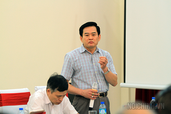 | Đồng chí Nguyễn Thanh Hải, Vụ trưởng Vụ Pháp luật, Ban Nội chính Trung ương phát biểu tại Hội thảo |