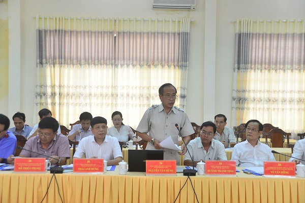 | Đồng chí Phan Văn Sáu, Ủy viên Trung ương Đảng, Tổng Thanh tra Chính phủ, Ủy viên Ban Chỉ đạo, Trưởng Đoàn công tác số 7 phát biểu tại Hội nghị |