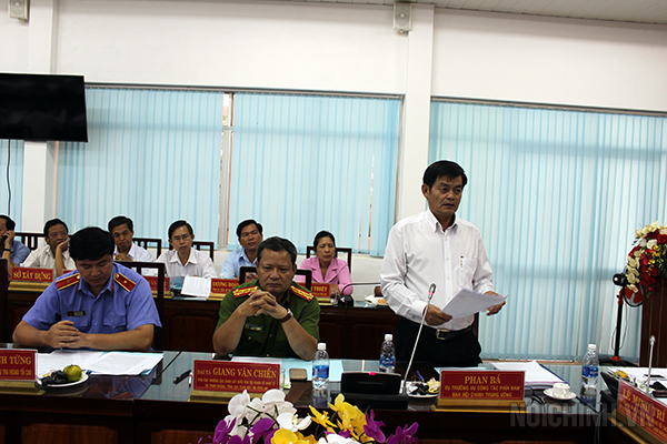 | Đồng chí Lê Minh Trí, Ủy viên Trung ương Đảng, Viện trưởng Viện kiểm sát nhân dân tối cao, Ủy viên Ban Chỉ đạo Trung ương về PCTN, Trưởng Đoàn công tác phát biểu chỉ đạo |