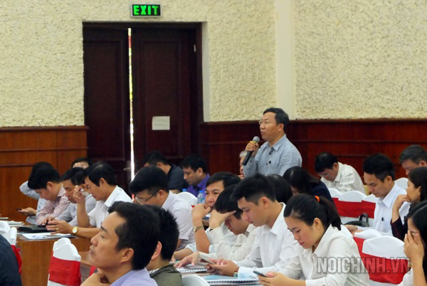 | Đồng chí Võ Văn Dũng, Ủy viên Trung ương Đảng, Phó Trưởng ban Thường trực Ban Nội chính Trung ương phát biểu tại buổi thuyết trình |