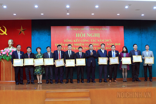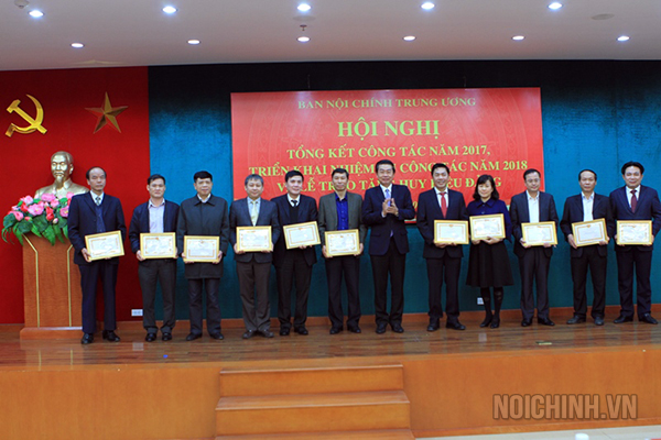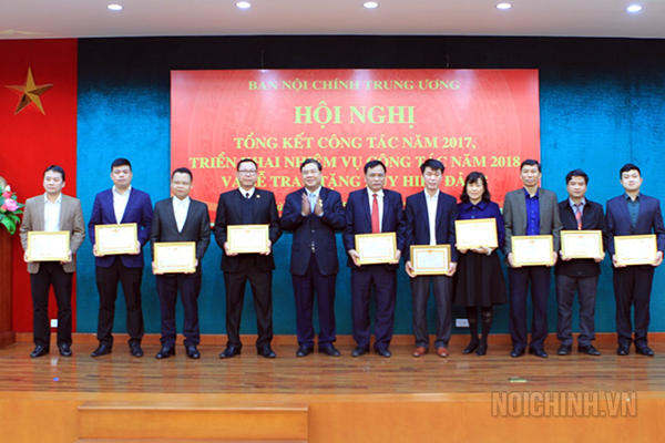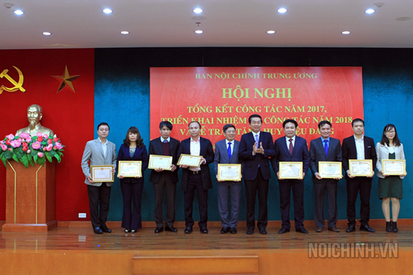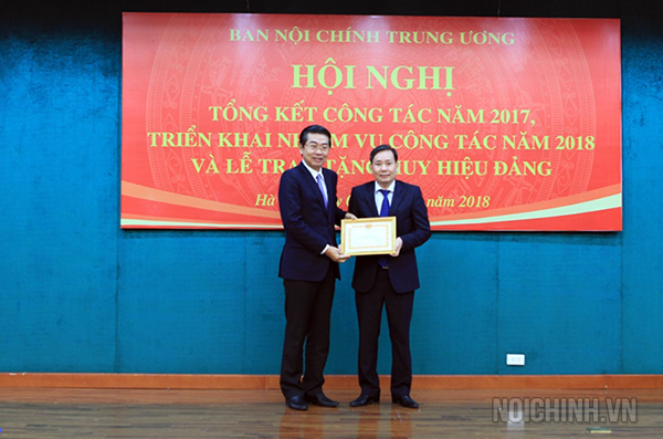 Đồng chí Phạm Gia Túc, Phó trưởng Ban Nội chính Trung ương trao tặng khen thưởng cho tập thể, cá nhân hoàn thành xuất sắc nhiệm vụ năm 2017