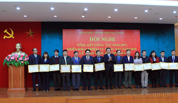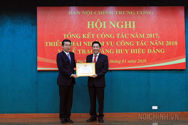 Đồng chí Võ Văn Dũng, Ủy viên Trung ương Đảng, Phó Trưởng ban Thường trực, Bí thư Đảng ủy Cơ quan Ban Nội chính Trung ương trao tặng khen thưởng cho tập thể, cá nhân hoàn thành xuất sắc nhiệm vụ năm 2017