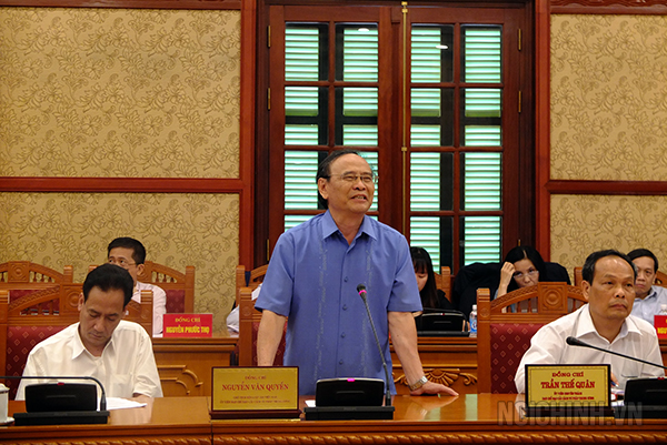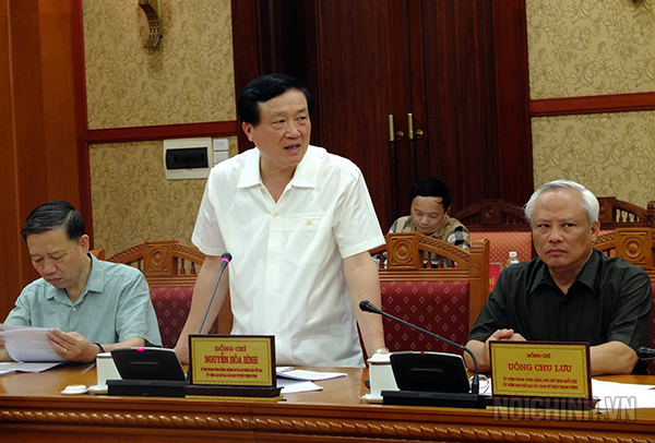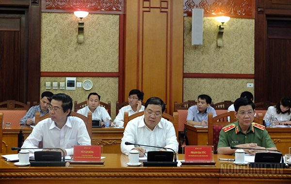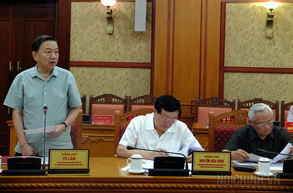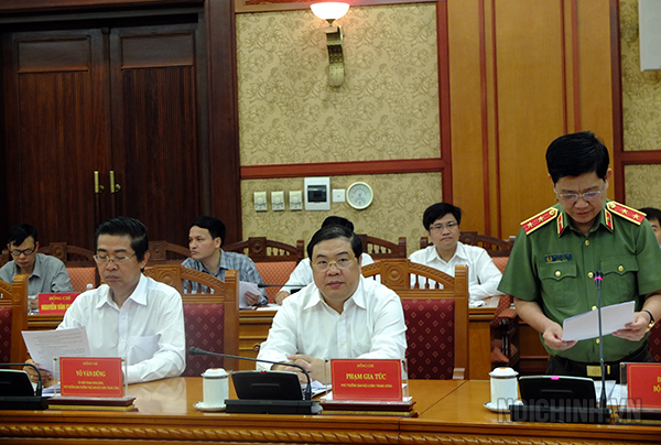 | Đồng chí Phạm Gia Túc, Phó trưởng Ban Nội chính Trung ương trình bày dự thảo Kế hoạch kiểm tra, đôn đốc việc thực hiện nhiệm vụ cải cách tư pháp |