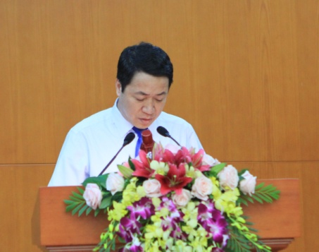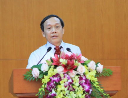 | Đồng chí Võ Văn Dũng, Ủy viên Trung ương Đảng, Phó Trưởng ban Thường trực Ban Nội chính Trung ương trình bày báo cáo tại Hội nghị |