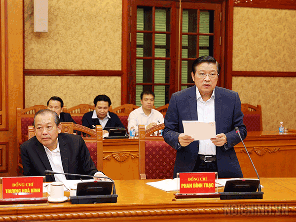 | Đồng chí Nguyễn Xuân Trường, Vụ trưởng Vụ Địa phương, Ban Nội chính Trung ương phát biểu tại buổi làm việc |