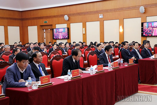 | Đồng chí Phan Đình Trạc, Bí thư Trung ương Đảng, Trưởng Ban Nội chính Trung ương, Phó Trưởng ban Thường trực Ban Chỉ đạo Trung ương về phòng, chống tham nhũng, Phó Trưởng ban Thường trực Ban Chỉ đạo Cải cách tư pháp Trung ương phát biểu kết luận |
