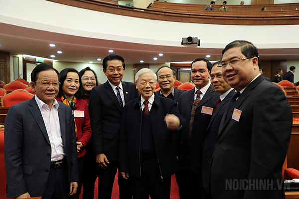 Đồng chí Nguyễn Phú Trọng, Tổng Bí thư, Chủ tịch nước, Trưởng Ban Chỉ đạo Trung ương về phòng, chống tham nhũng với các đại biểu dự Hội nghị