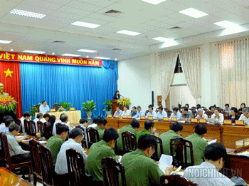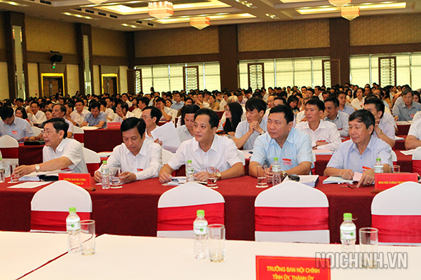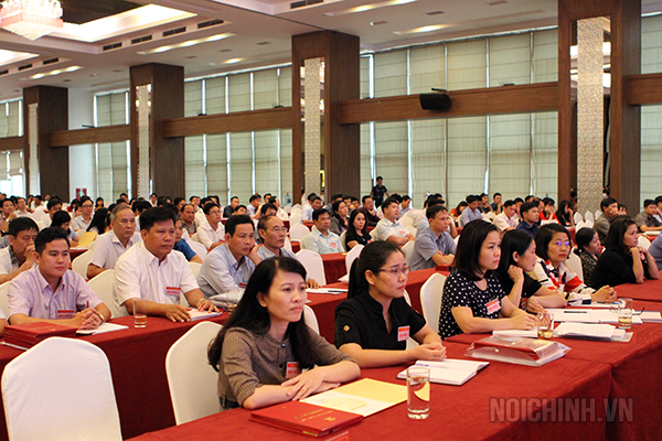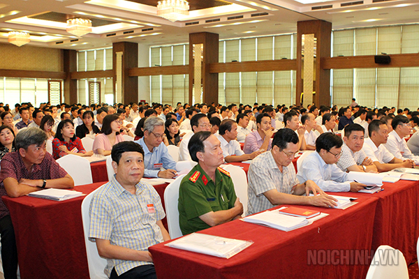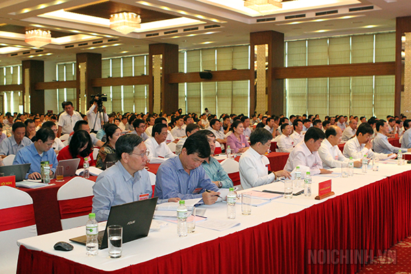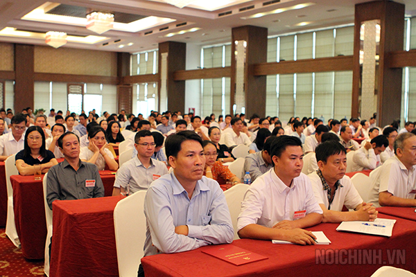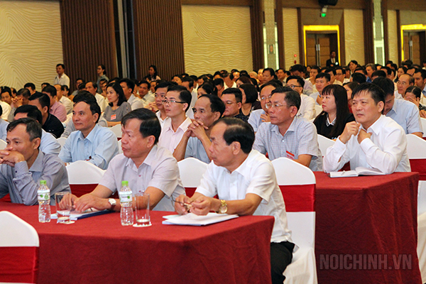 | Đồng chí Phan Đình Trạc, Bí thư Trung ương Đảng, Trưởng Ban Nội chính Trung ương, Phó Trưởng ban Thường trực Ban Chỉ đạo Trung ương về phòng, chống tham nhũng, Phó Trưởng ban Thường trực Ban Chỉ đạo Cải cách tư pháp Trung ương dự và phát biểu tại Hội nghị |
