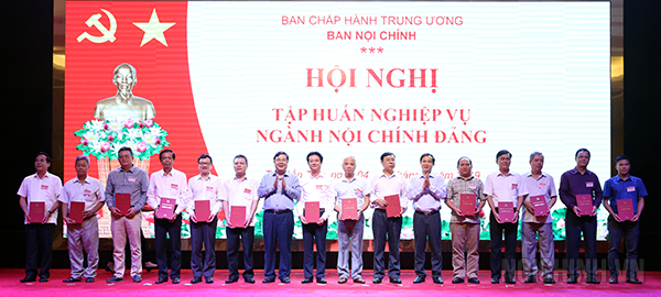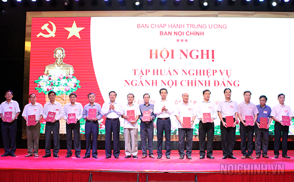 Lãnh đạo Ban Nội chính Trung ương trao chứng nhận tham gia lớp tập huấn cho các đại biểu dự Hội nghị