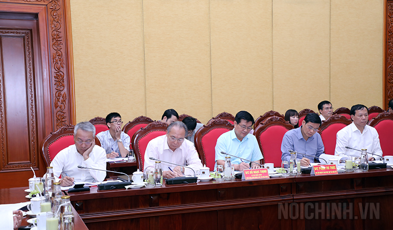 Đồng chí Phan Đình Trạc, Bí thư Trung ương Đảng, Trưởng Ban Nội chính Trung ương, Trưởng Ban Chỉ đạo tổng kết thực hiện Nghị quyết số 49-NQ/TW của Bộ Chính trị và 10 năm thực hiện Chỉ thị số 33-CT/TW của Ban Bí thư, Trưởng Đoàn công tác phát biểu tại buổi làm việc
