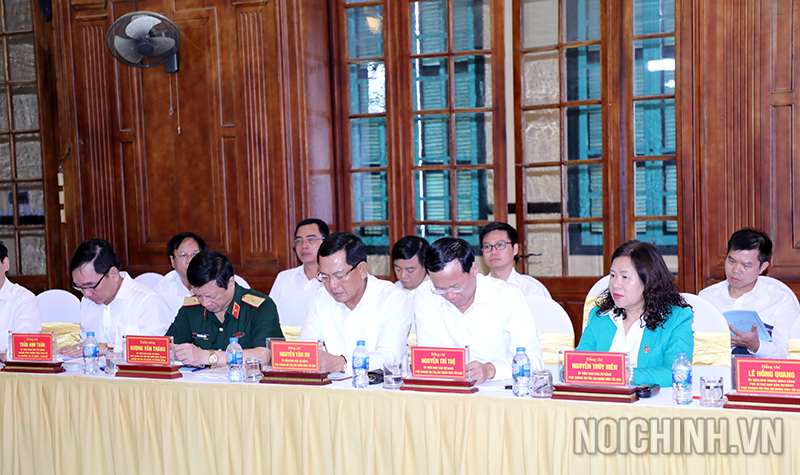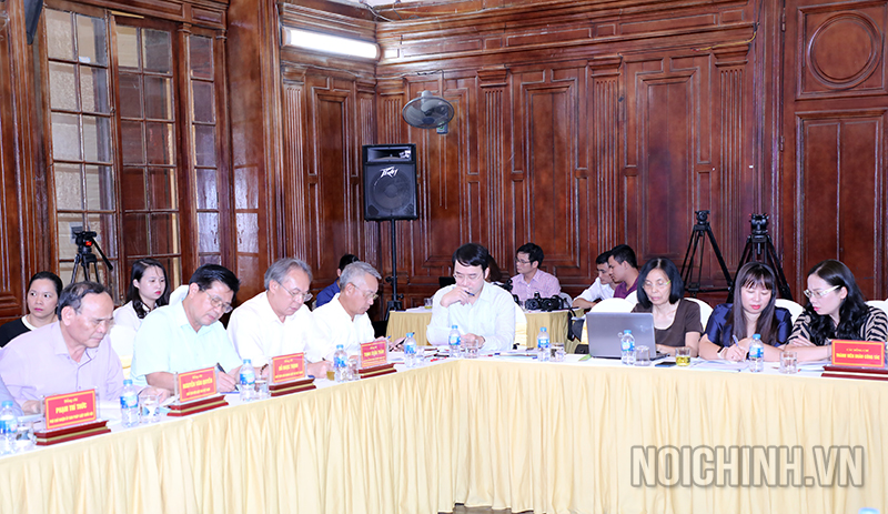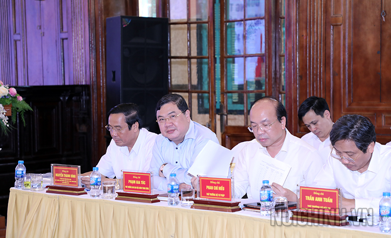 | Đồng chí Phan Đình Trạc, Bí thư Trung ương Đảng, Trưởng Ban Nội chính Trung ương, Trưởng Ban Chỉ đạo tổng kết thực hiện Nghị quyết số 49-NQ/TW của Bộ Chính trị và 10 năm thực hiện Chỉ thị số 33-CT/TW của Ban Bí thư, Trưởng Đoàn công tác phát biểu tại buổi làm việc |