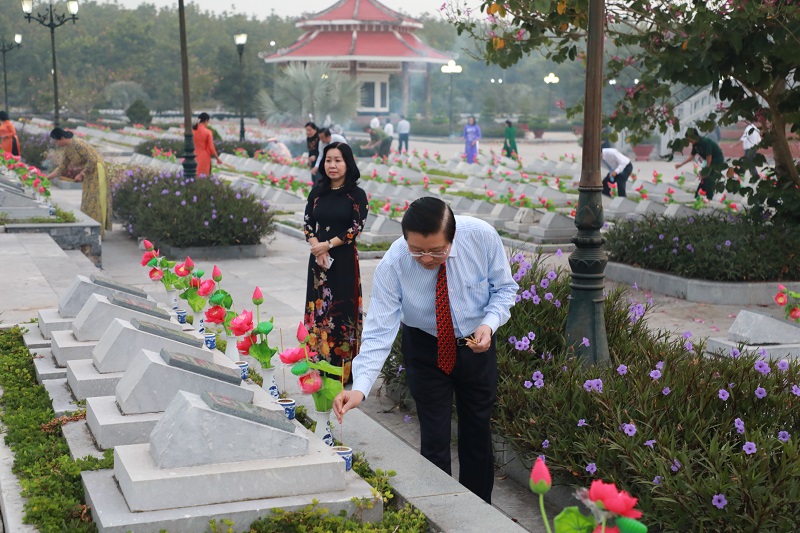 | Đồng chí Phan Đình Trạc, Bí thư Trung ương Đảng, Trưởng Ban Nội chính Trung ương cùng các đồng chí Lãnh đạo và nguyên Lãnh đạo tỉnh Tây Ninh thắp hương tưởng nhớ các anh hùng liệt sỹ |