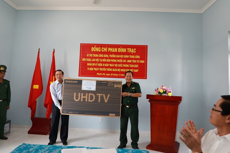 Đồng chí Phan Đình Trạc gặp gỡ, tặng quà cho cán bộ, chiến sỹ và trồng cây lưu niệm tại Đồn Biên phòng Phước Chỉ