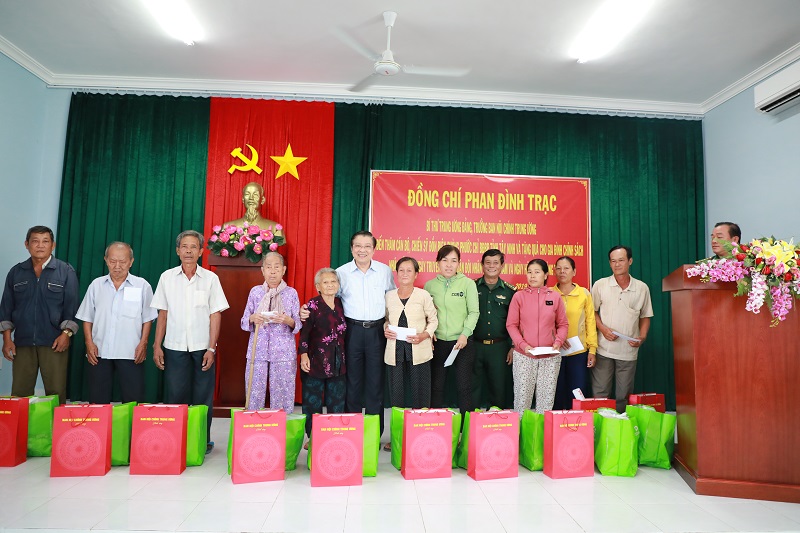 Đồng chí Bí thư Trung ương Đảng tặng quà cho các gia đình chính sách, tặng xe đạp cho học sinh nghèo xã Phước Chỉ, huyện Trảng Bàng, tỉnh Tây Ninh