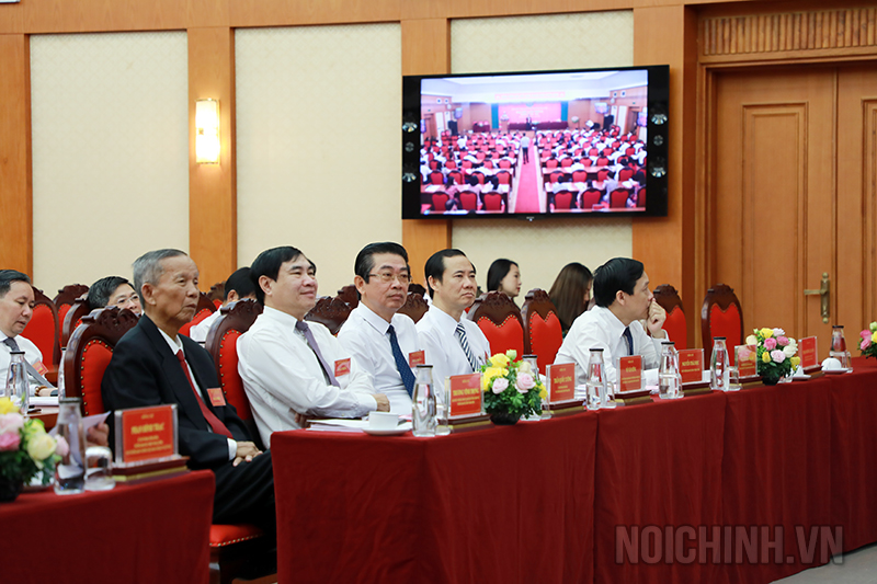 | Các đồng chí: Phan Đình Trạc, Bí thư Trung ương Đảng, Trưởng Ban Nội chính Trung ương; Võ Văn Dũng Ủy viên Trung ương Đảng, Phó Trưởng ban Thường trực Ban Nội chính Trung ương tặng hoa chúc mừng Ban Chấp hành Đảng bộ Cơ quan Ban Nội chính Trung ương, nhiệm kỳ 2020-2025 |