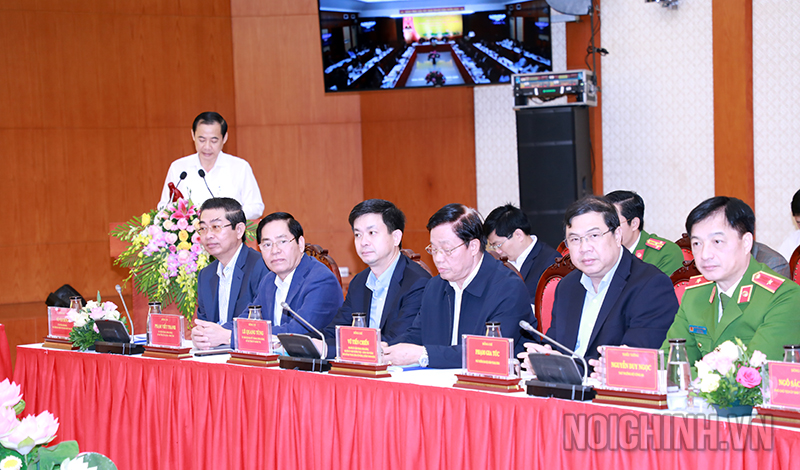 | Đồng chí Phan Đình Trạc, Bí thư Trung ương Đảng, Trưởng Ban Nội chính Trung ương, Phó Trưởng ban Thường trực Ban Chỉ đạo Trung ương về phòng, chống tham nhũng, Phó Trưởng Ban Thường trực Ban Chỉ đạo Cải cách tư pháp Trung ương phát biểu tại Hội thảo |