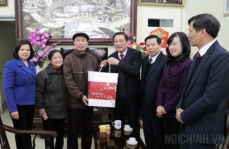 | Đồng chí Phan Đình Trạc, Bí thư Trung ương Đảng, Trưởng Ban Nội chính Trung ương tặng quà cho Thương binh Nguyễn Văn Dẫn, khu phố 2, phường Vệ An, thành phố Bắc Ninh |