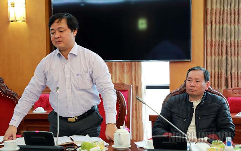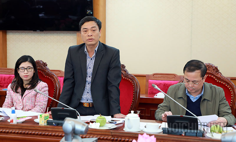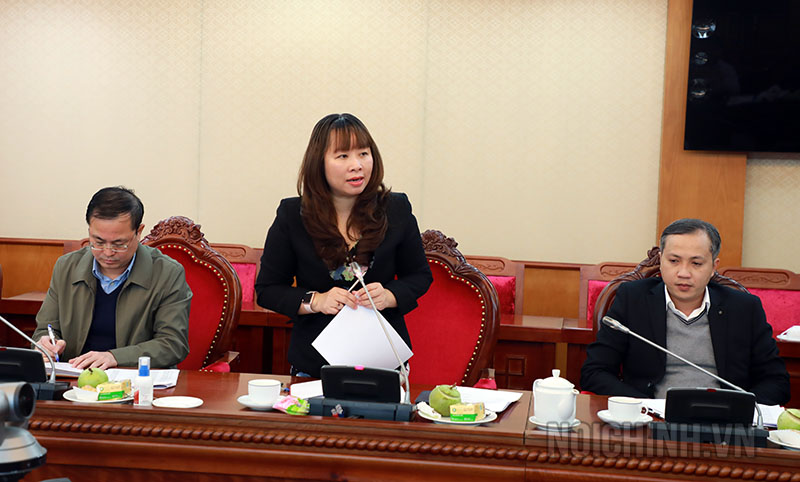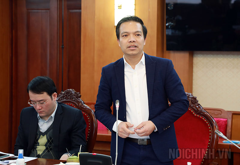 | Đồng chí Nguyễn Cảnh Lam, Phó Vụ trưởng Vụ Nghiên cứu Tổng hợp, Phó Chủ tịch Hội đồng Khoa học cơ quan trình bày báo cáo tại Hội nghị |