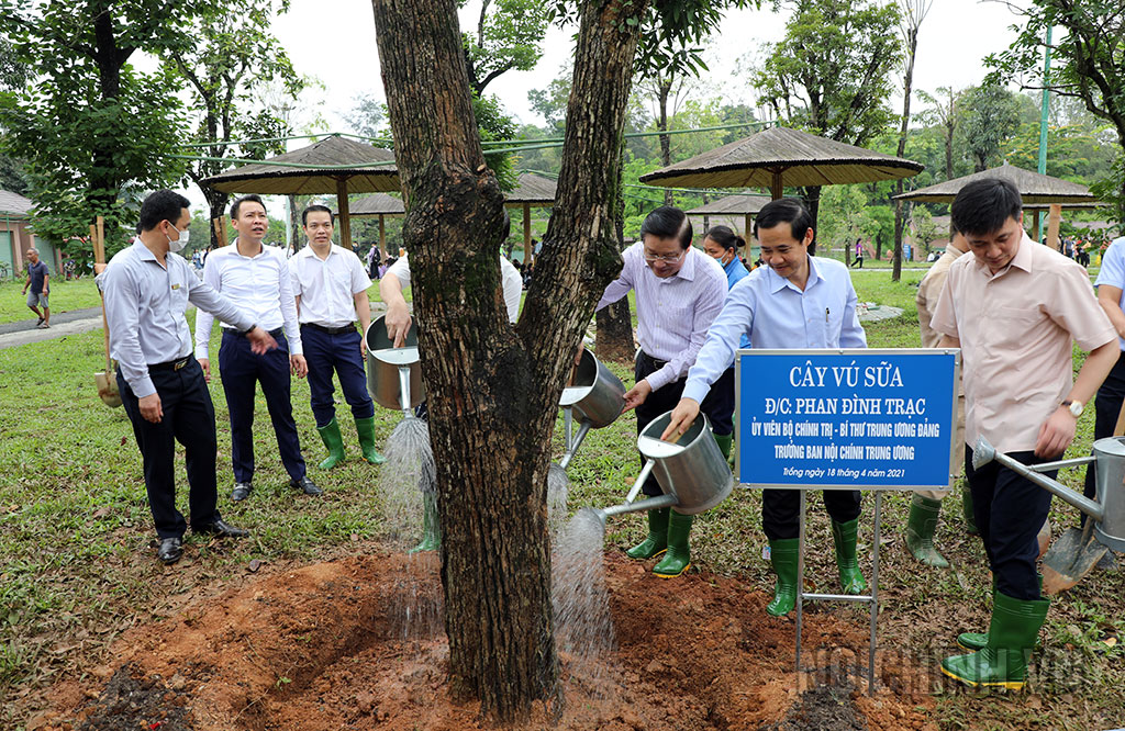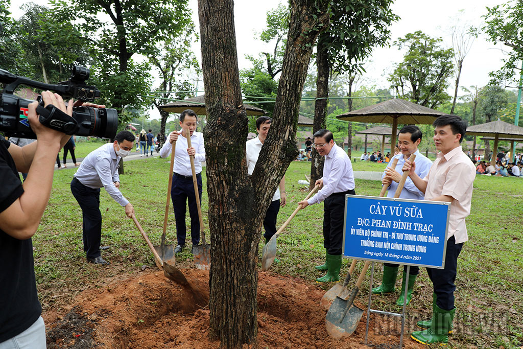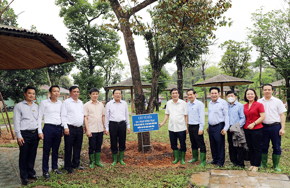 Đoàn công tác của Ban Nội chính Trung ương và Lãnh đạo tỉnh Phú Thọ trồng cây và chụp ảnh lưu niệm tại Khu di tích lịch sử Quốc gia đặc biệt Đền Hùng