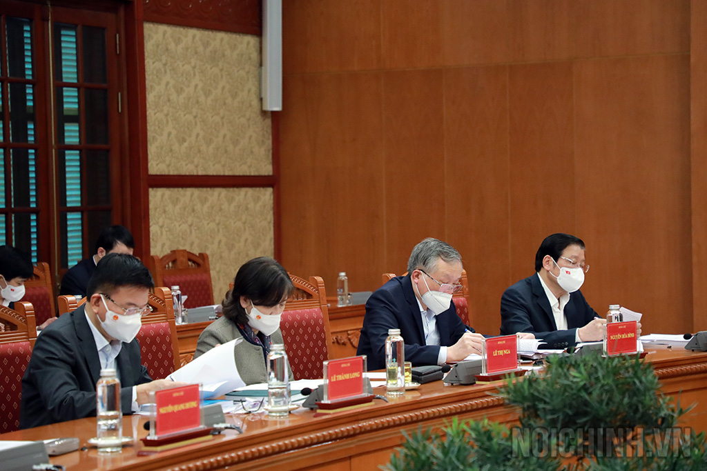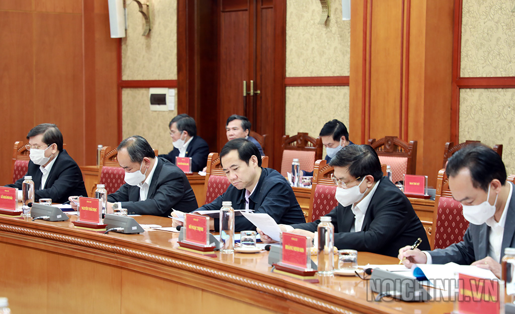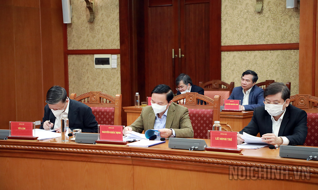 | Đồng chí Phan Đình Trạc, Ủy viên Bộ Chính trị, Bí thư Trung ương Đảng, Trưởng Ban Nội chính Trung ương, Phó Trưởng ban Thường trực Ban Chỉ đạo Trung ương về phòng, chống tham nhũng, Phó Trưởng ban Thường trực Ban Chỉ đạo Cải cách tư pháp Trung ương phát biểu tại Phiên họp |