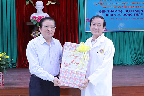 | Đồng chí Trần Quốc Cường, Ủy viên Trung ương Đảng, Phó Trưởng Ban Nội chính tặng hoa chúc mừng đồng chí Nguyễn Văn Yên |