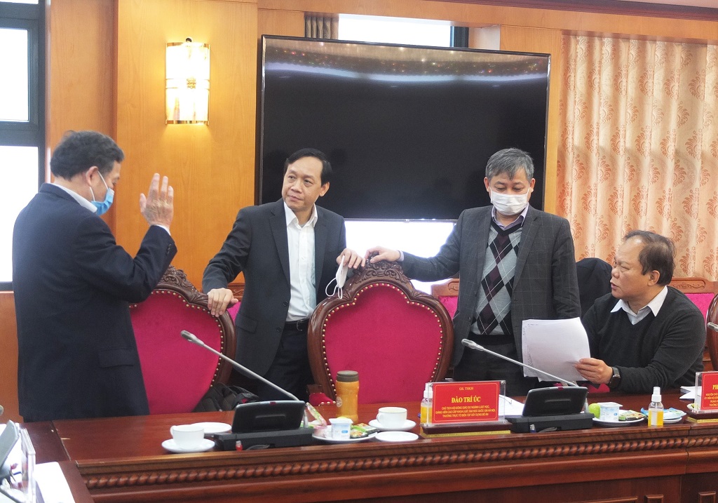 | Đồng chí Võ Văn Dũng, Ủy viên Trung ương Đảng, Phó Trưởng ban Thường trực Ban Nội chính Trung ương, thành viên Ban Chỉ đạo xây dựng Đề án và đồng chí Nguyễn Thanh Hải, Phó trưởng Ban Nội chính Trung ương, thành viên Ban Chỉ đạo xây dựng Đề án, kiêm Tổ trưởng Tổ Biên tập chủ trì Hội nghị |