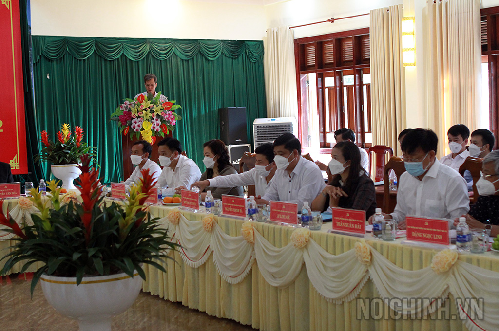 | Đồng chí Nguyễn Văn Hoà, Phó Bí thư Tỉnh ủy Kon Tum phát biểu tại Hội nghị |