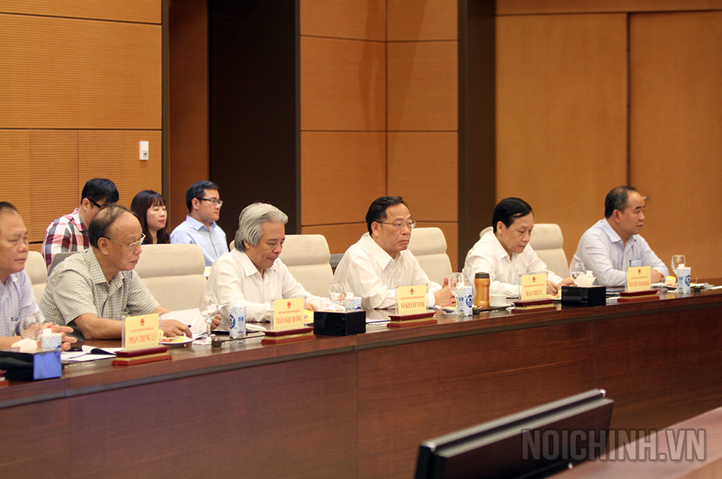| Giáo sư, Tiến sỹ Trần Ngọc Đường, Nguyên Phó Chủ nhiệm Văn phòng Quốc hội, Ủy viên Đoàn Chủ tịch, Chủ tịch hội đồng tư vấn dân chủ - pháp luật, Ủy ban Trung ương Mặt trận Tổ quốc Việt Nam, Thường trực Tổ Biên tập phát biểu tại buổi làm việc |