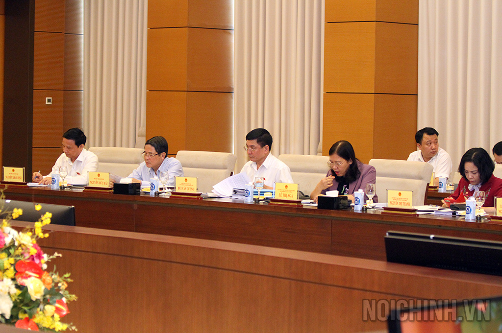 | Đồng chí Lê Thị Nga, Ủy viên Trung ương Đảng, Ủy viên Ủy ban Thường vụ Quốc hội, Chủ nhiệm Ủy ban Tư pháp Quốc hội phát biểu tại buổi làm việc |